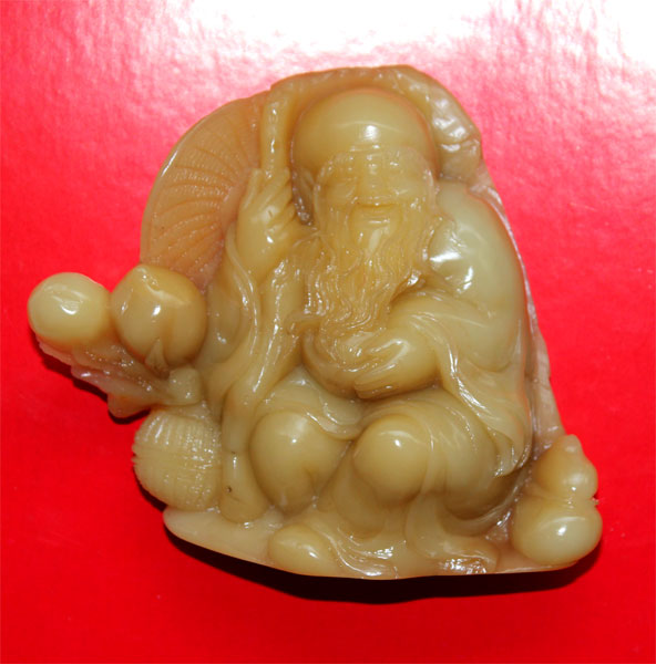 寿山老性红黄芙蓉寿星摆件