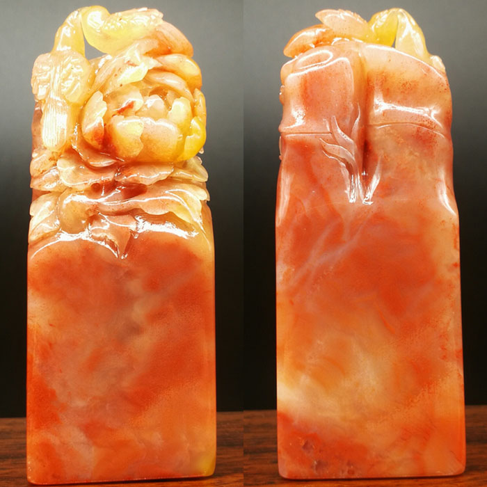寿山红黄芙蓉寿桃椭圆章精品