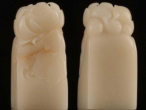 寿山白芙蓉荷花精品章