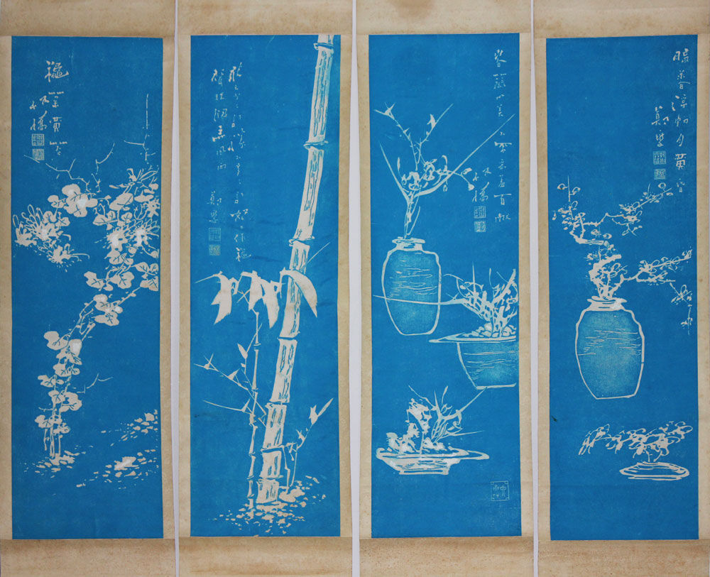梅兰竹菊四条屏(拓片)